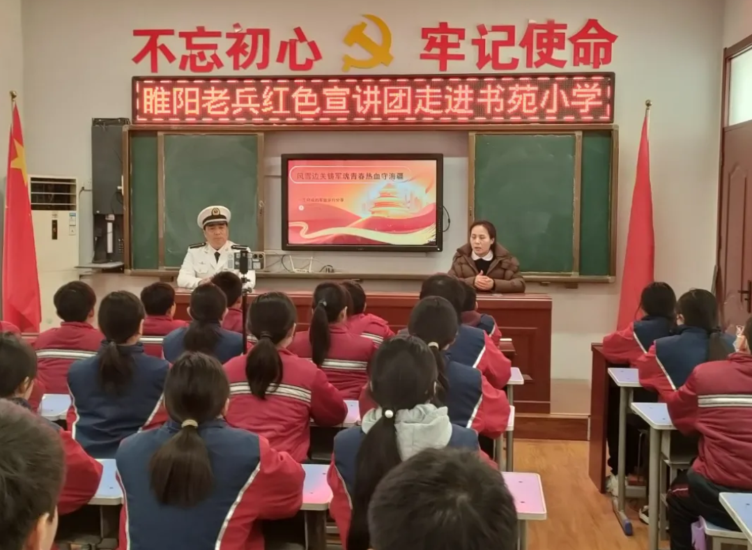为厚植青少年爱国情怀,传承红色基因,12月15日,睢阳区老兵宣讲团成员王晓威走进睢阳区古宋街道书苑小学,为500余名师生带来了一场生动深刻的爱国主义教育宣讲,让红色精神在校园落地生根。
