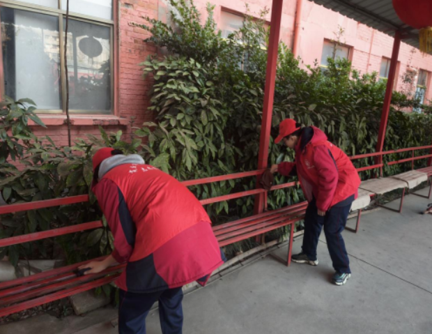 活动伊始,学生志愿者们便化身“清洁小卫士”,带着抹布、扫帚等工具,分工协作,热火朝天地投入到卫生清扫工作中。大家不怕脏、不怕累,仔细擦拭门窗扶手,认真清理院落死角,还贴心地走进老人房间,为老人们整理床铺、叠被子。看着焕然一新的居住环境,老人们的脸上洋溢着欣慰的笑容。