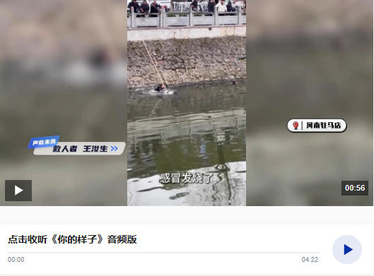 近日,河南驻马店汝南县护城河边上演了惊险一幕。一名男子不慎落水,命悬一线。危急时刻,住在河边的王汝生纵身跃入冰冷河水,成功将落水者救起。而令人想不到的是,王汝生是一位体重只有90多斤、接受过胃全切手术的胃癌患者,救人时自己还高烧38.9℃。