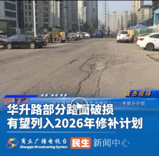 同期声:示范区城市管理交通运输局市政科工作人员 冯福新:这段路是星林路到富商大道的华升路段,我们前年做了一次华升路的修补,因为这边牵扯到有新开的小区,然后补到兴华家园,大概是补了一半,这一段因为有仨小区同时开工,因为车流量比较大,大车多。然后这一段就没补。那咱什么时候能把它给修了呢?我回去给领导汇报,看能列入2026年的计划不。重新把兴华家园门口到富商大道的华升路路段。你说得年后才能修补了是吗?对,年后,因为年前天气比较冷,这个沥青铺上以后,它不一定结实。