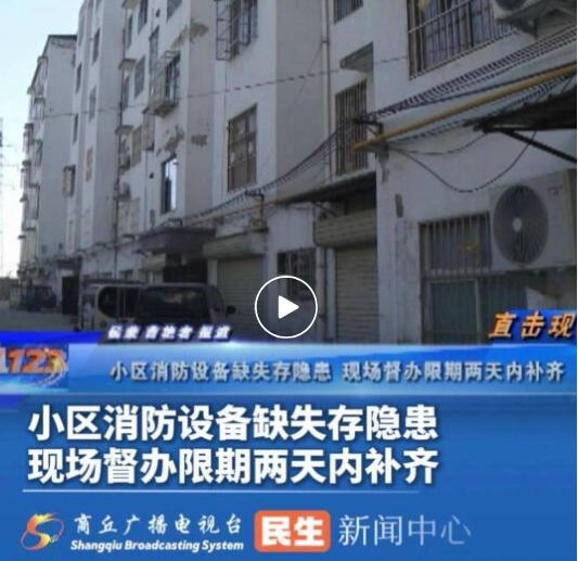 同期声:睢阳区路河镇政府工作人员 史保忠:咱镇政府对于这个小区内消防设施缺失这个情况咱之前知道吗?现在这情况是不?对。现在情况就是说原先有一部分,时间过长了,这有的都坏了,现在这有的不到位,下一步就是说加强管理,在两天之内整改完毕。就是之前这个情况咱知道吗?现在知道了。之前咱不知道吗?现在知道了。现在知道这个情况了。那咱作为镇政府对这个消防这一方面管理,咱们平常是怎么管理的?平常给你说的也有管理人员,也经常观察着下面,检查着呢。也怕发生事故,也经常检查。那没有检查到咱这个小区吗?也经常检查小区,现在不错的,这也有点(工作)漏洞。下面就是整改,就是全部一次到位,两天之内全部整改好,消防器材缺啥补上。一次性到位了。不能再有一点马虎了。