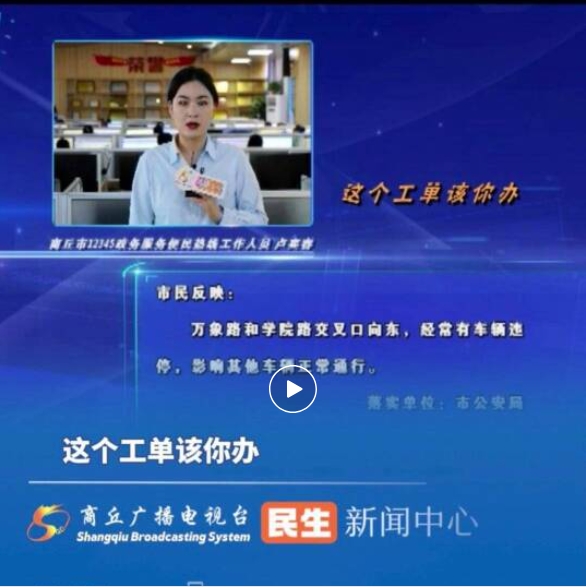 出镜:商丘市12345政务服务便民热线工作人员 卢奕睿:好的,主持人,直通12345,这个工单该你办。