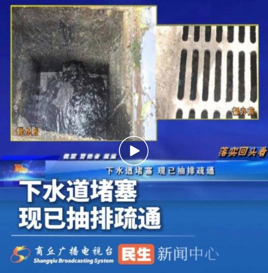 口播:在前天的节目中,我们报道了在阳光路与平南路交叉口往东300米,下水道堵塞,造成市民生活不便。当时示范区城市管理交通运输局的工作人员表示三天内安排抽污车进行疏通。今天,我们就得到了好消息。