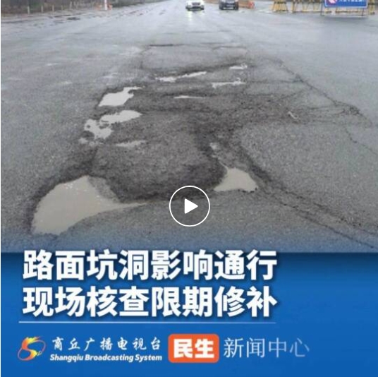 同期声 示范区城市管理交通运输局 市政科 工作人员 冯福新:那针对这个问题咱们下一步有什么措施去给它处理一下,修复一下?现在天比较冷,补上沥青热补料现在也不现实,我们这几天准备看用高标准水泥,比如说c40,c45那种水泥,看临时先把这个路面先恢复一下,保证通行这一块。那这个过程大概能持续几天?现在正在下雨,下雨结束以后,大概一个星期之内吧。