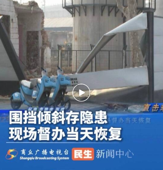 解说:倾斜的围挡已与当天恢复正常,消除了安全隐患。