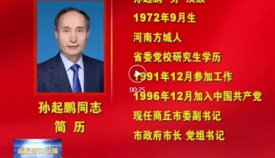 11月27日上午,商丘市第六届人民代表大会第四次会议圆满完成各项议程后在市工人文化宫闭幕。会议选举孙起鹏为商丘市人民政府市长。市委...