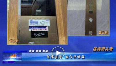 口播:在之前的节目中,我们栏目报道了市区建业世和府小区19号楼电梯故障居民出行不便的情况,当时电梯维保单位的工作人员表示,会尽快开...