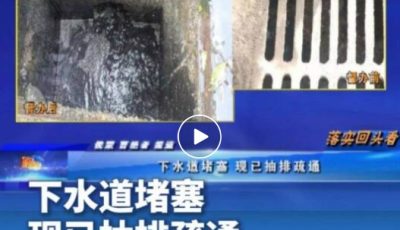 口播:在前天的节目中,我们报道了在阳光路与平南路交叉口往东300米,下水道堵塞,造成市民生活不便。当时示范区城市管理交通运输局的工...