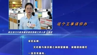 口播:再来看看市民反映的哪些问题,被商丘市12345政务服务便民热线派送到哪些单位。 出镜:商丘市12345政务服务便民热线工作人...