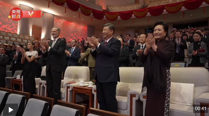 独家视频丨习近平夫妇同西班牙国王费利佩六世夫妇一同观看音乐会 来源: 央视网 2025年11月13日 8:35 11月12日晚,国家主席习近平和夫人彭丽媛在北京国家大剧院同西班牙国王费利佩六世夫妇一同观看西班牙皇家剧院音乐会。