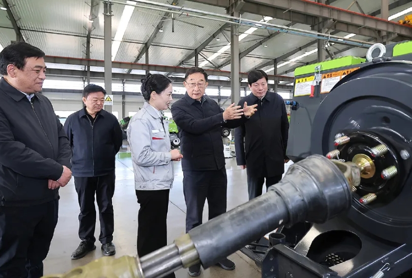 获嘉县聚集了多家从事农机生产、销售和服务的企业,基本形成了农机装备全产业链。刘宁来到新乡市花溪科技股份有限公司,察看秸秆收获打捆机等现代农机设备,详细了解农机装备制造产业集群发展、企业研发经营等情况。“中央‘十五五’规划《建议》对加快农业农村现代化、扎实推进乡村全面振兴作出专章部署,提出要推进高端智能农机装备研发应用,促进良田良种良机良法集成增效。”刘宁强调,要发挥新乡农业大市的突出优势,统筹发展科技农业、绿色农业、质量农业、品牌农业,提升农业机械化、智能化水平,推动秸秆综合利用变废为宝,把农业建成现代化大产业。