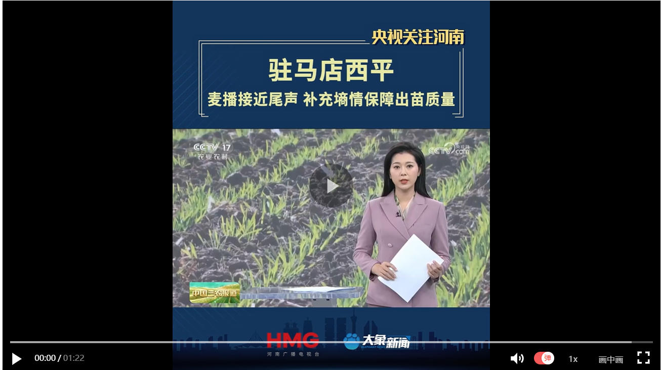 【央视关注河南西平】麦播接近尾声 补充墒情保障出苗质量