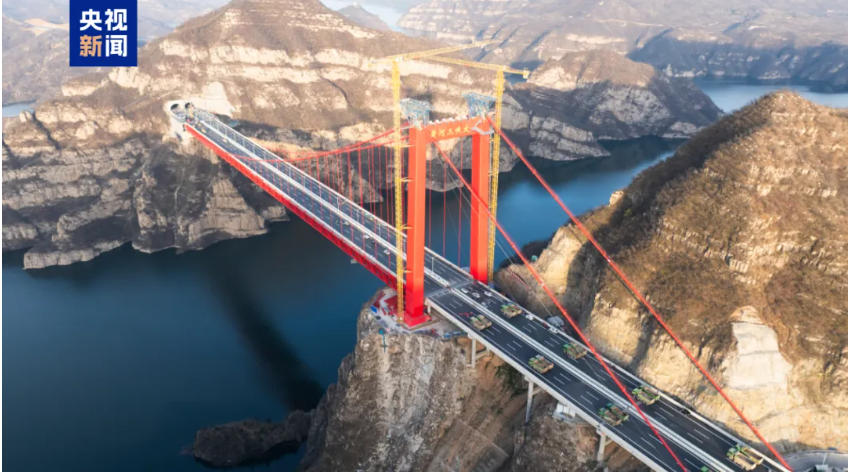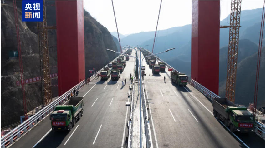 12月5日下午,世界首创独塔地锚式回转缆悬索桥——济新高速黄河三峡大桥顺利完成荷载试验,标志着大桥主体具备正式通车条件。