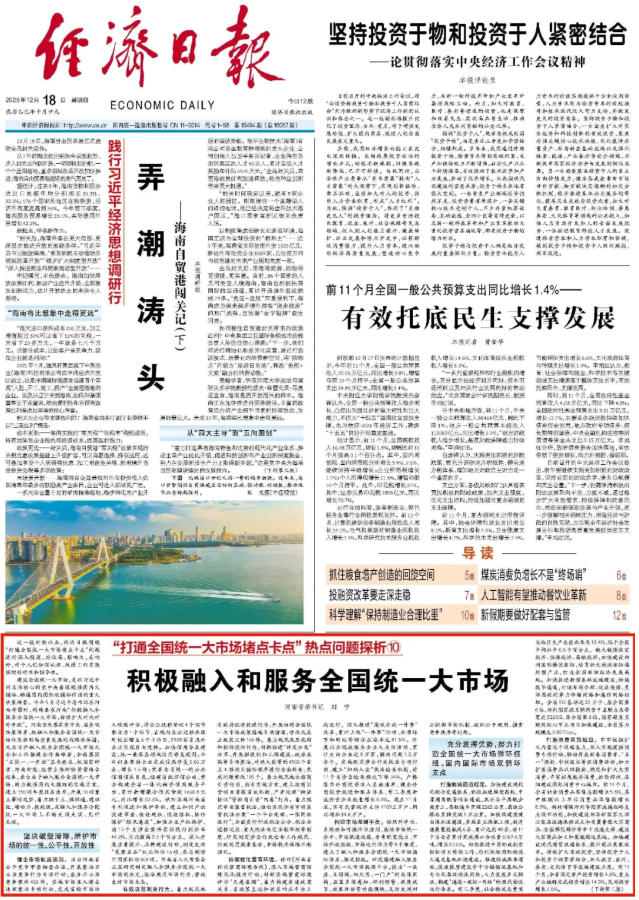 近一段时期以来,经济日报围绕“打通全国统一大市场堵点卡点”问题进行深入报道,站位高,影响大,反响好,对于人们加深认识、改进工作有很强的针对性和指导性。