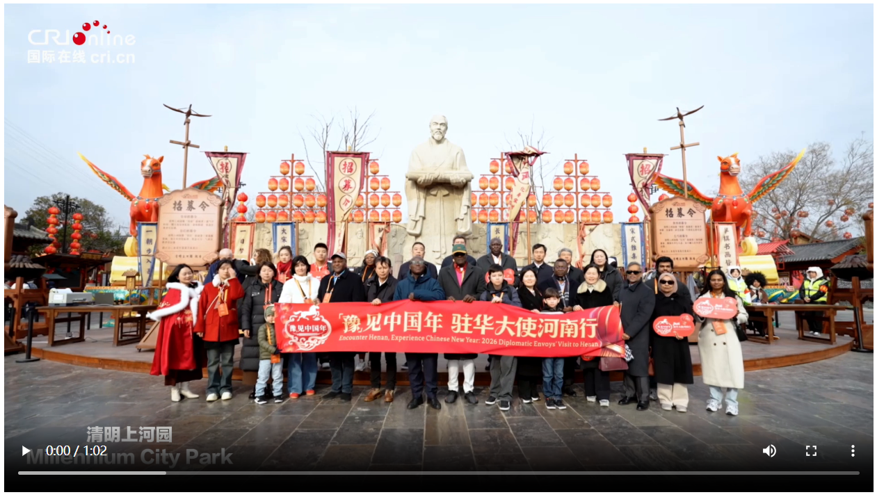 “豫”见中国年|满园宋韵满园春 驻华使节及家人清明上河园里过大年 来源: 国际在线 2026年2月16日 20:35 国际在线河南消息(记者 张雨晴):2月15日,参加“豫”见中国年——2026驻华大使河南行活动的多位驻华使节及家人走进开封清明上河园,从视觉、味觉到触觉,全方位感受中华文明的厚度与温度。