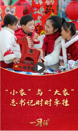 一习话·热气腾腾的中国年丨“小家”与“大家” 总书记时时牵挂 来源: 央广网 2026年2月21日 8:14 “柴米油盐、三餐四季,每个‘小家’热气腾腾,中国这个‘大家’就蒸蒸日上。” 在2026年新年贺词中,习近平总书记这句饱含深情的寄语,道出“小家”与“大家”之间紧密而深刻的联系。“小家”活力温馨,映照出“大家”蓬勃发展的万千气象。“大家”强盛壮阔,守护着无数“小家”幸福祥和。 丙午马年,让我们怀揣新希望、新期许,以一马当先的气概和马不停蹄的干劲,为梦想奋斗、为幸福打拼,书写出不平凡的时代篇章。 标签:网络中国节·元宵