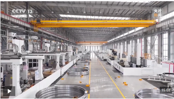 技术骨干刘明辉刚冲过长跑终点,就走向了智能生产线。由他参与研发的18兆瓦风电主机轴承,今天又有一批新产品下线,正等着做最后的精度检测。