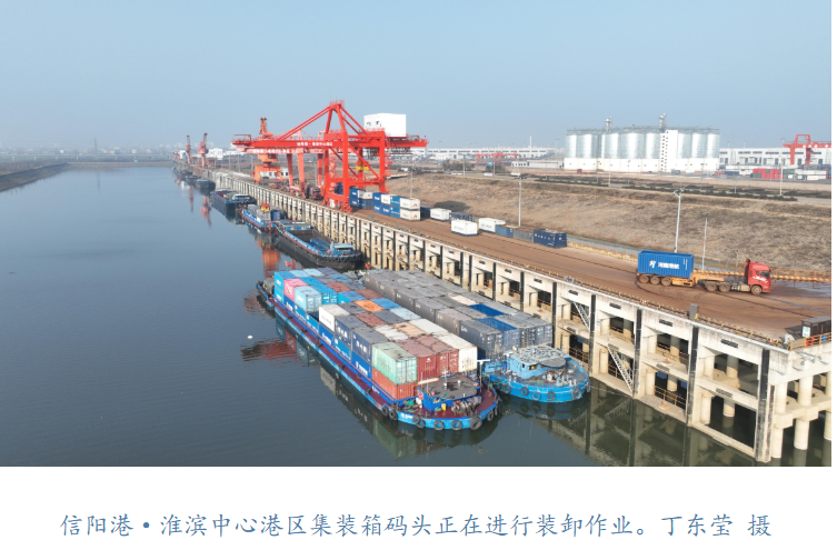 马年新春,豫南的淮河之滨,风里还带着寒意,信阳港·淮滨中心港却已是一派火热。