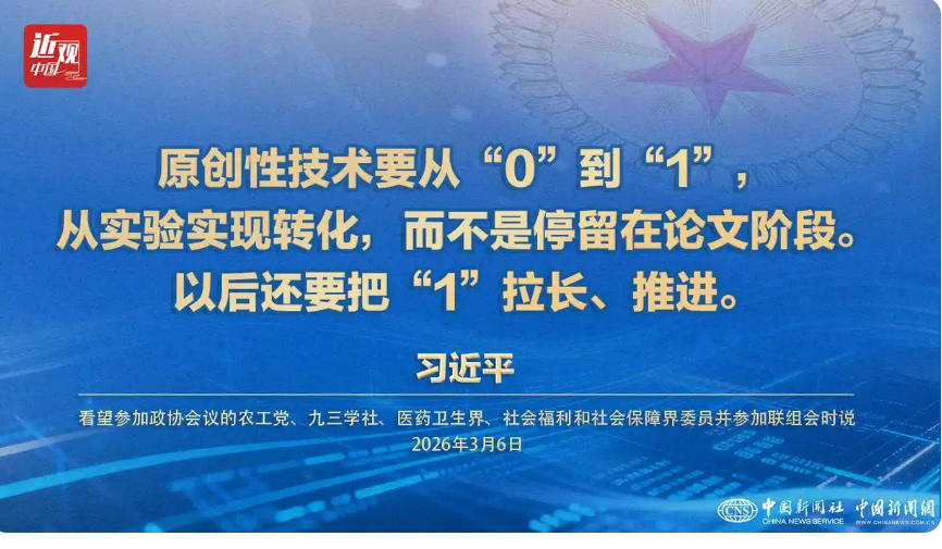 中新社北京3月7日电 题:习近平:原创性技术要从“0”到“1”,还要把“1”拉长