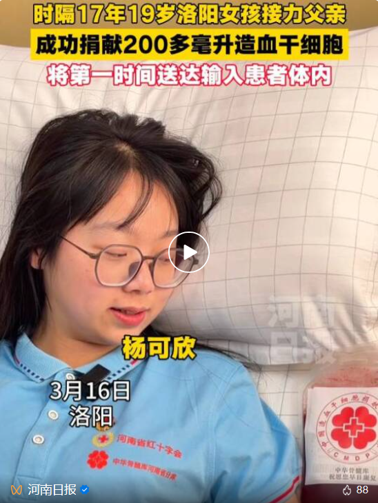 随着这次捐献成功,杨可欣成为河南省非血缘关系造血干细胞捐献第1650例,中国第22447例捐献者,也是目前河南省年龄最小的捐献者。而杨振亚和杨可欣也成为中华骨髓库首对父女造血干细胞捐献者。