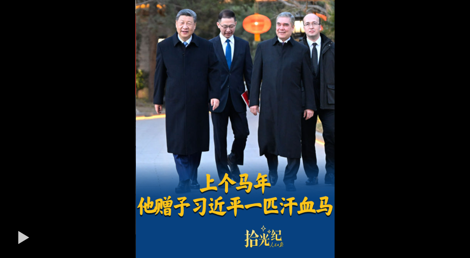 3月18日,国家主席习近平会见土库曼斯坦民族领袖、人民委员会主席别尔德穆哈梅多夫。2014年,别尔德穆哈梅多夫曾赠予中方一匹汗血马。“推动中土关系像汗血宝马一样马不停蹄、一马当先”,一起回顾中土的“骏马外交”。