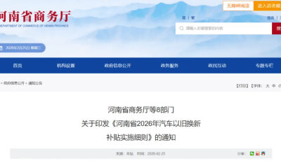 新年换新车,补贴怎么领?2月25日,省商务厅等8部门印发了《河南省2026年汽车以旧换新补贴实施细则》的通知,并发布《2026年河...