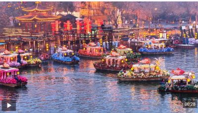 乘鱼龙画舫,入烟波画境。河南开封汴河码头灯火通明,画舫船在河面穿梭不息,与龙舟、花船交相辉映,灯影随碧波层层漾开,仿佛穿越千年,共...