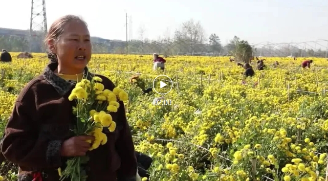 附近村民 王欣霞:俺是挨边庄上的,离的近,老早的送过学生,不耽误来这摘菊花,手快的(一天)挣个百十块,回来也不耽误接学生,在这恁多人说说笑笑的很自在,很高兴,还挣着钱了。