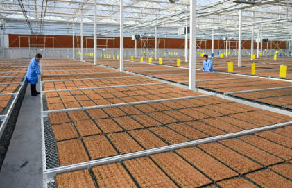 3月11日,在洛阳市嵩县新建成投用的中草药良种繁育基地,技术人员正在培育丹参种苗。李卫超 摄