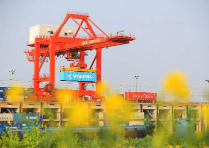 3月12日,信阳港·淮滨中心港作业繁忙:巨型岸桥精准装卸集装箱,货轮有序靠泊离港,货车穿梭不息,龙门吊与人员高效联动,实现“到港即作业、装卸不过日”,尽显河南最大综合性单体港口的内河活力。邱彦文 摄