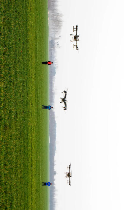 3月9日,鄢陵县至尊农机农民专业合作社的飞手操控无人机,在该县南坞镇南坞村连片高标准小麦种植区喷施叶面肥,科学实施麦田春季管理,全力保障小麦返青旺长,为夏季粮食丰产丰收筑牢基础。 吕超峰 摄