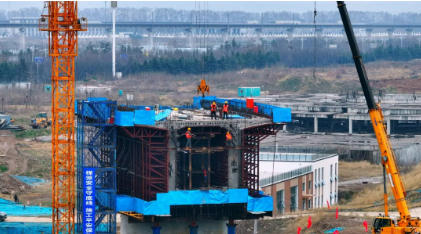 3月8日,位于洛阳市瀍河回族区的焦济洛平跨洛河高铁大桥,工人正在现场忙碌。 王宏欣 摄
