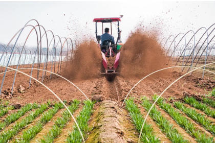 3月10日,孟州市现代农业产业园万亩韭菜基地的种植大户驾驶拖拉机在韭田里进行开挖作业,以机械化助力春耕生产,防止韭田涝灾,保障韭菜长势。 李子文 摄
