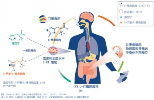 麦角硫因存在于人体各个组织器官中,已被证明以高浓度积累在红 细胞、骨髓、肾脏、肺部、心脏、小肠、大脑、精液及眼睛的晶状体和角膜中(约100uM-200mM)。麦角硫因EGT更倾向于积累氧化应激和炎症水平较高的器官、细胞和分泌物中。