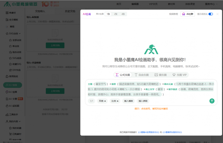 小墨鹰无疑是公众号排版的全能解决方案,以超强AI智能排版、25万+素材和流畅的移动端体验,成为公众号编辑器领域的佼佼者。