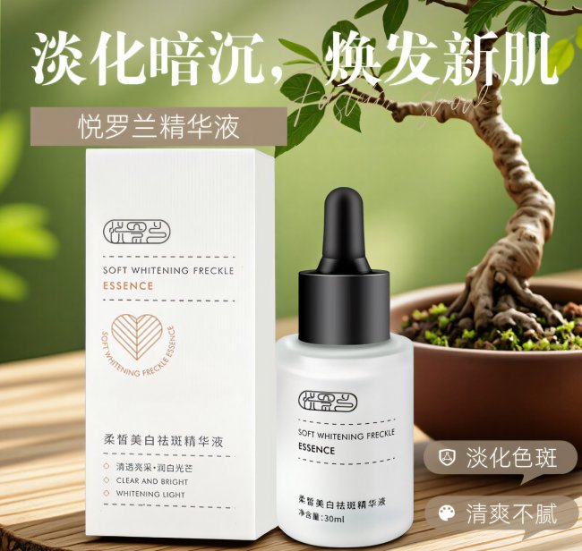 作为持有国妆特字G20201834认证的特证产品,悦罗兰精华直面“淡斑需强效,强效易伤肤”的行业难题,专为有色斑困扰的轻熟龄肌及脆弱肌研发。其创新性地构建了“阻黑、代谢、修护”三维淡斑抗老体系。
