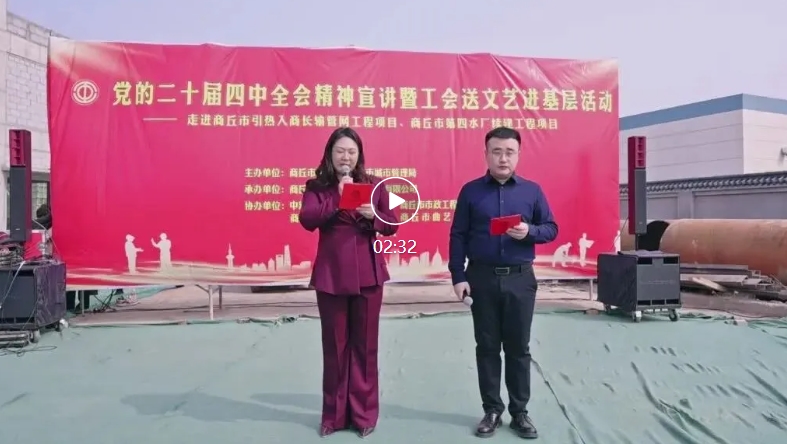 3月9日,商丘市总工会联合市城市管理局,深入引热入商长输管网、第四水厂续建项目一线,举办党的二十届四中全会精神宣讲暨工会送文艺进基层活动,为一线建设者送上兼具理论深度与烟火气的精神文化大餐。