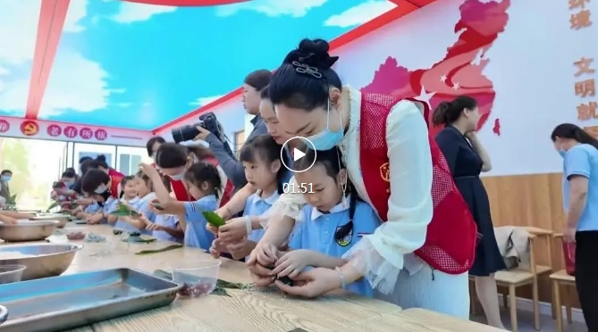 现场:为大家过一个集体生日宴会,为大家包的粽子,大家尝着粽子香不香(香),蛋糕甜不甜(甜),祝大家端午节快乐
