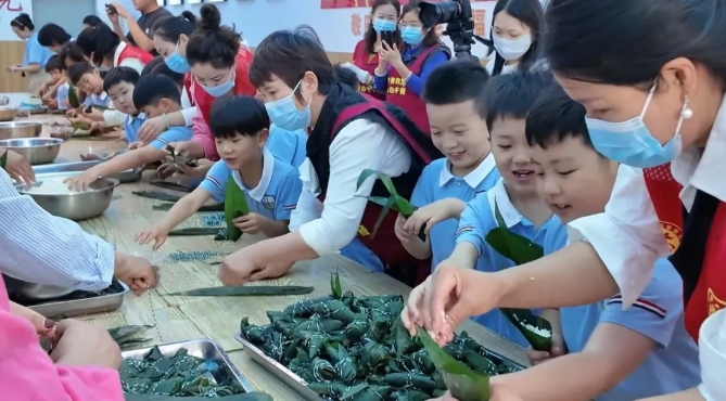 活动现场,孝善食堂早早准备好了食材,孩子们在志愿者和老师的指导下,兴致勃勃地包起了粽子。他们手握粽叶,将糯米、蜜枣等馅料包裹其中,虽然手法略显稚嫩,但每一个粽子都承载着他们对传统文化的热爱与尊重。