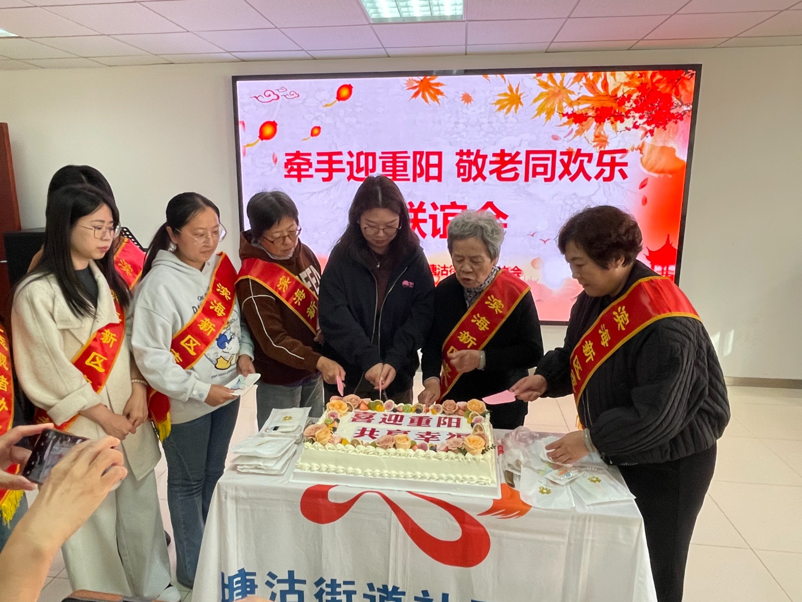10月21日上午,塘沽街道综合文化站内欢声笑语,“牵手迎重阳 敬老同欢乐”联谊会在这里暖心开启。辖区孤老、失独、残困老人与志愿者共100余人相聚一堂,共享重阳欢乐时光。