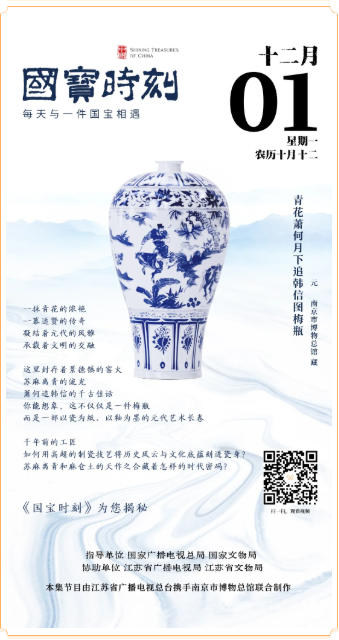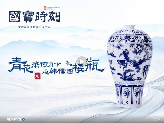 每天与一件国宝相遇!《国宝时刻・青花萧何月下追韩信图梅瓶》见证草原文化与中原文化的深度交融